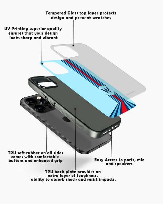 Cool Racing Stipes with White Carbon Pattern PREMIUM GLASS CASE