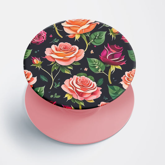 Black Floral Pattern Flat Pop Holder