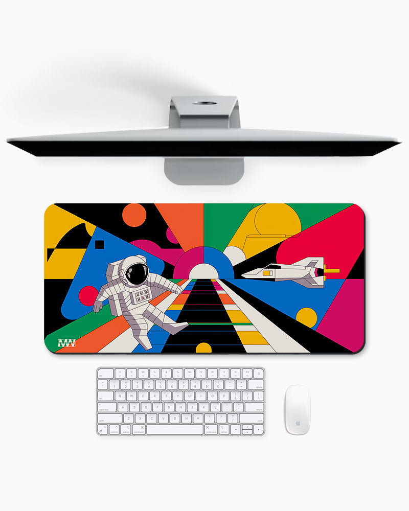 Astronaut's Journey on the Neon Path Deskmat