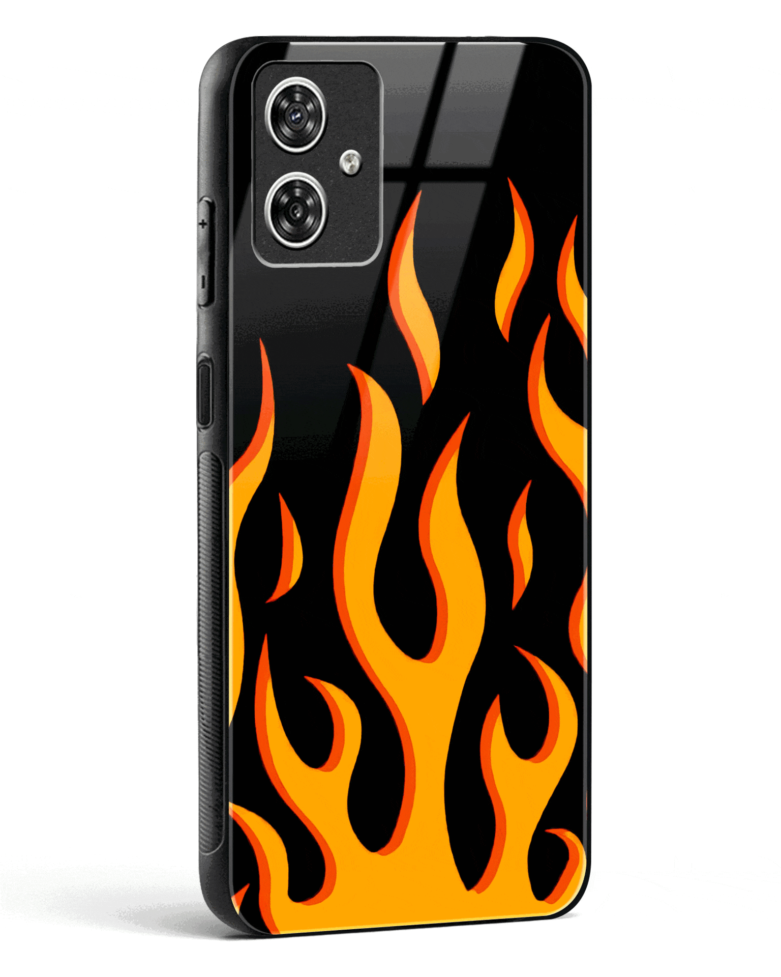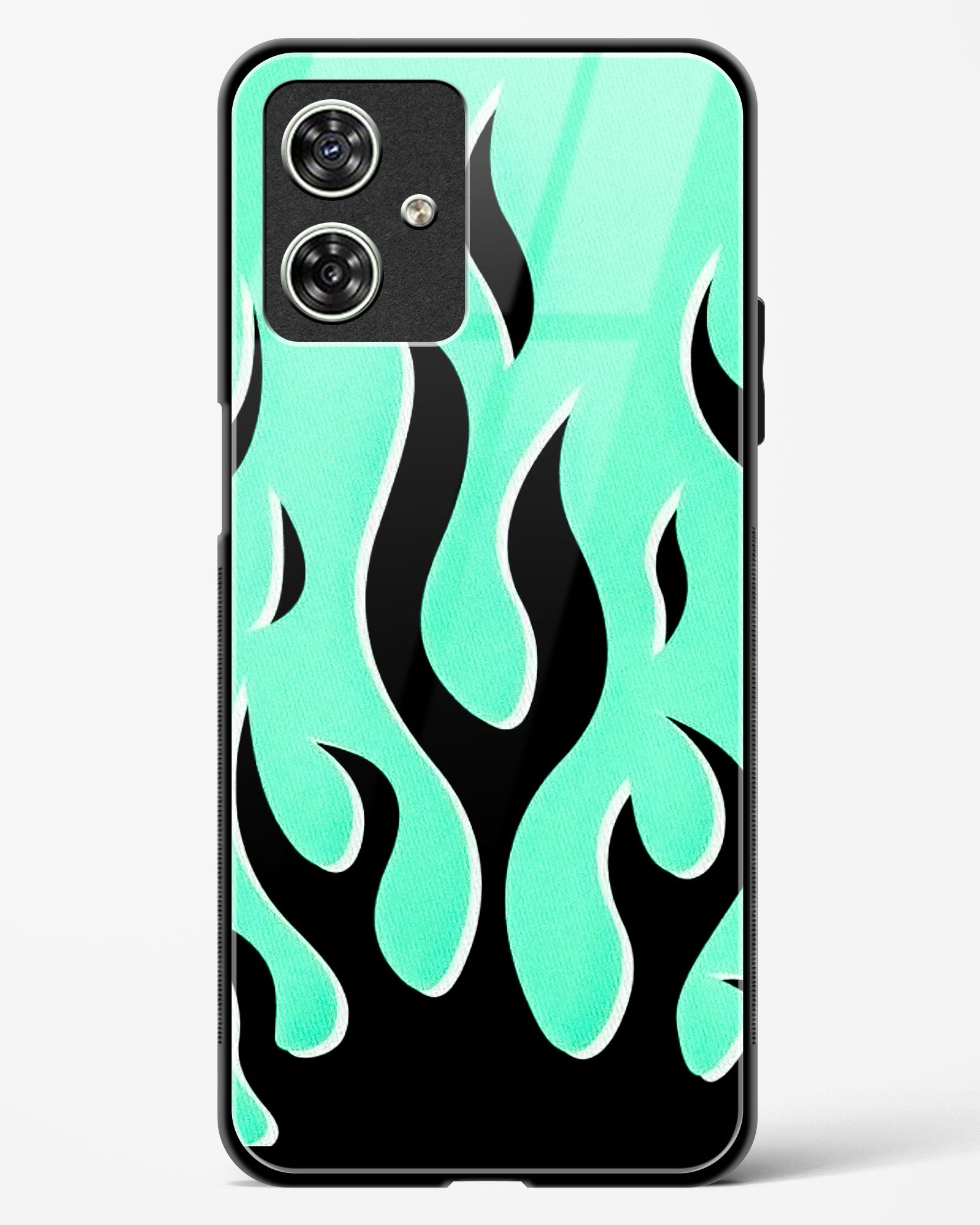 Flame Fusion Glass Phone Case-Moto G54 5G (Yellow, Red & Aqua)
